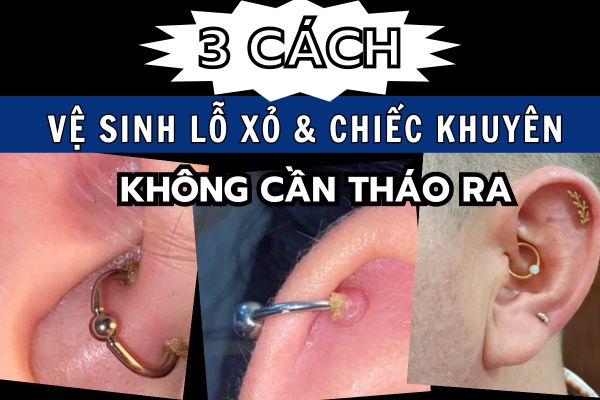 3 cách vệ sinh lỗ xỏ và chiếc khuyên không cần tháo ra cực kì hiệu quả cho các lỗ xỏ chưa lành. Tuy nhiên, điều này không có nghĩa là lỗ xỏ lành rồi không thể áp dụng đâu nha.