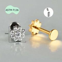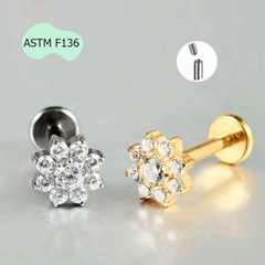 Bông tai hoa hướng dương đính đá 1.2*8mm - 2 màu - Titanium
