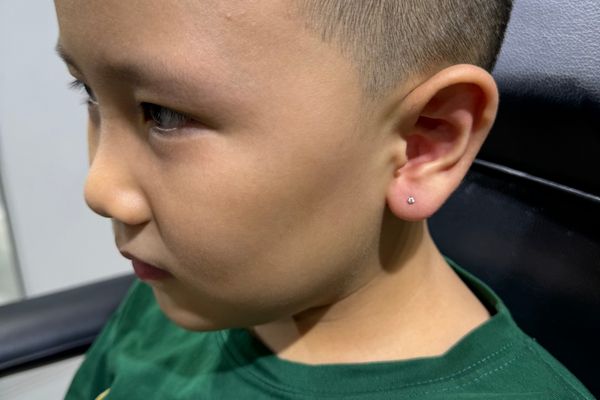 Hình ảnh bé nam xỏ khuyên tai tại TinyBox