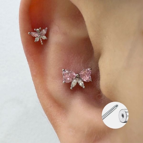 Hợp kim / Khuyên hình chuồn chuồn đá hồng