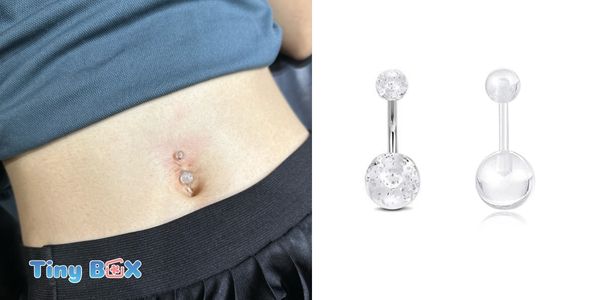 Thay vì sử dụng khuyên rốn trong suốt đơn giản, TinyBox còn có thêm khuyên rốn thạch cũng hạn chế được tầm nhìn và giữ lỗ rất tốt.