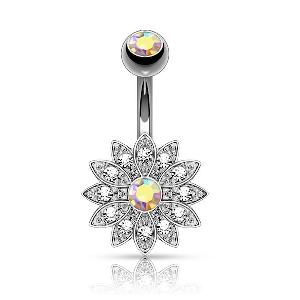 Khuyên rốn hoa 12 cánh đính đá 5 màu thời trang được bán tại TinyBox với chất lượng cao - chất liệu thép không gỉ 316L với nhiều màu sắc đẹp mắt. Ngoài ra, với thiết kế bắt mắt, nhẹ nhàng, trẻ trung, sản phẩm đảm bảo sẽ mang đến cho bạn sự thoải mái nhất khi sử dụng.