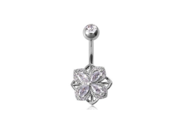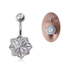 Khuyên rốn hình bông hoa 4 cánh thép - Thép không gỉ