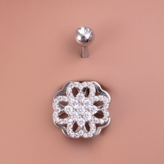Khuyên rốn hình bông hoa đính đá - 1.6*10mm - Thép không gỉ