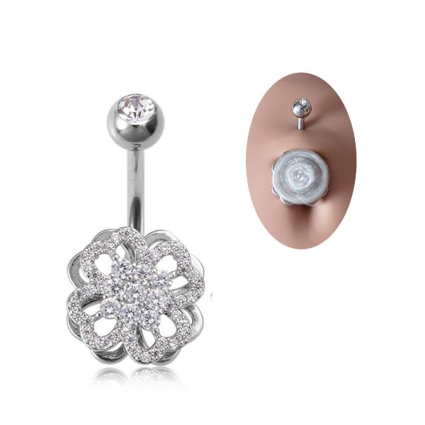 - Tên sản phẩm: Khuyên rốn hình bông hoa đính đá
