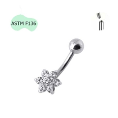 Khuyên rốn hình bông hoa nhỏ đính đá - Titanium