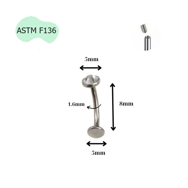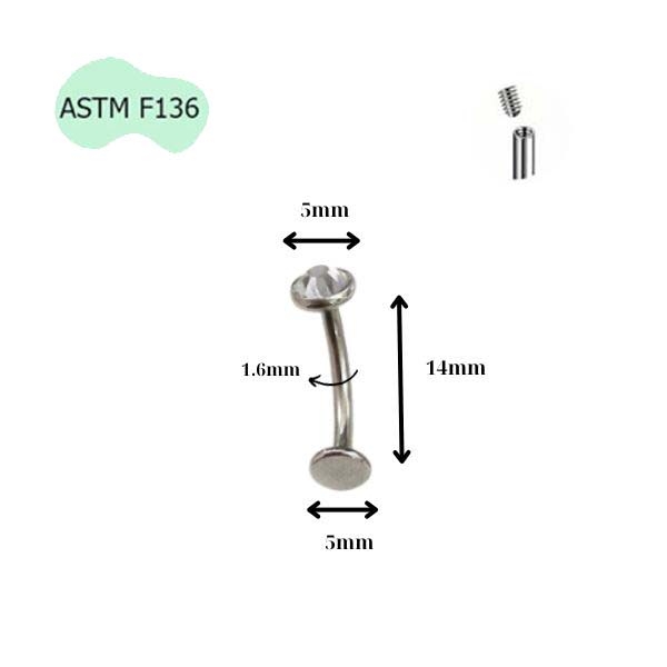 Tên sản phẩm: Khuyên rốn nổi Titanium đá trắng