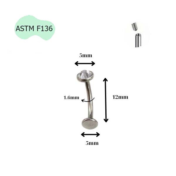 Khuyên rốn nổi Titanium đá trắng - Có 3 size