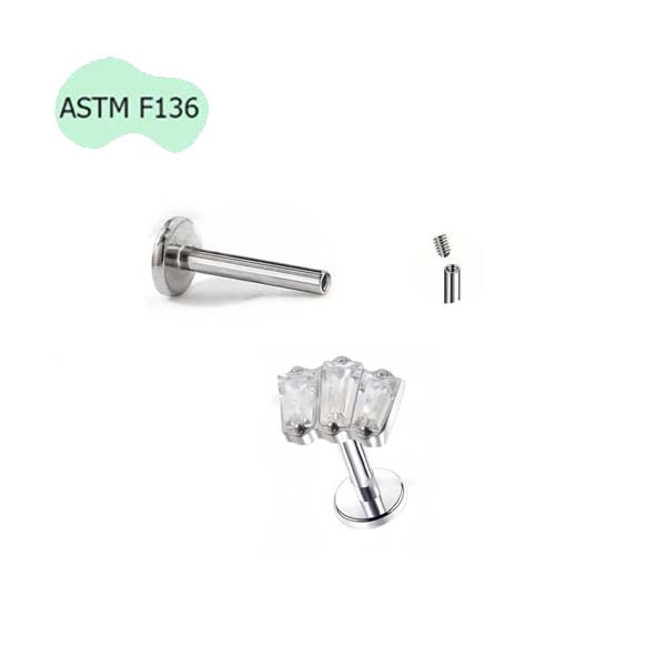 Khuyên tai đính đá đơn giản - Titanium F136 - 1.2*10mm
