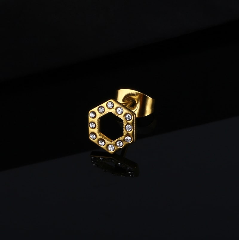 Khuyên tai hình lục giác đính đá