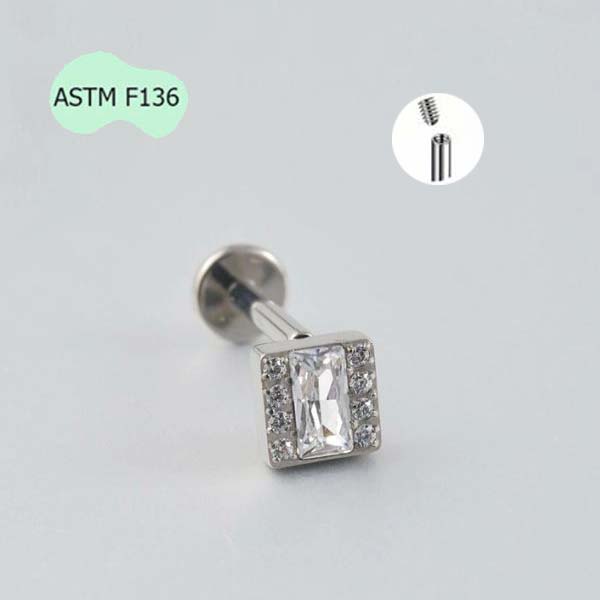 Khuyên tai hình vuông đính đá - Titanium F136 - 1.2*8mm