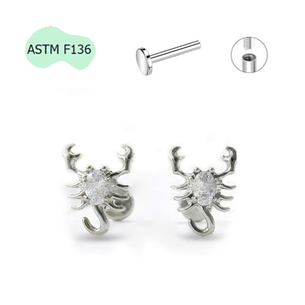 Khuyên tai Titan F136 hình bọ cạp đính đá - 1.2*10mm