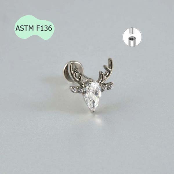 Khuyên Titan hình hươu đính đá lấp lánh - 1.2*8mm