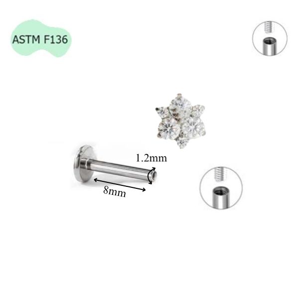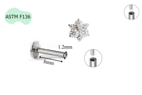 Khuyên titan hoa đính đá dễ thương - 1.2*8mm