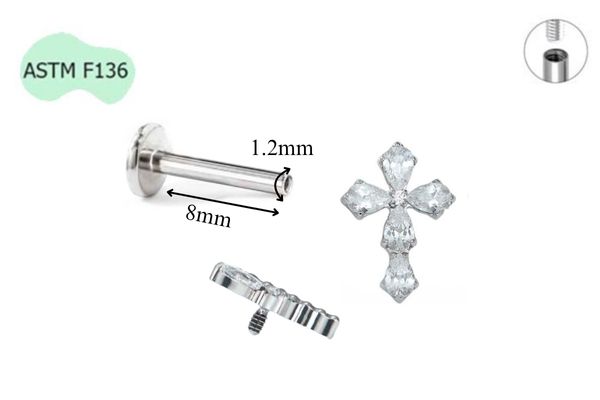 Khuyên titan thánh giá đính đá đẹp - 1.2*8mm