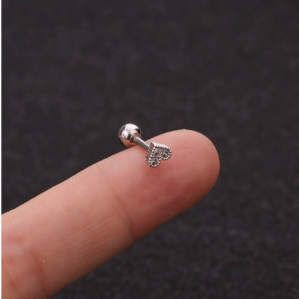 Khuyên trái tim mini đính đá trắng / Hợp kim