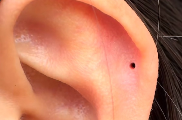 Trông giống một "đường hầm" mini: Khi quan sát kỹ, bạn sẽ thấy lỗ xỏ khuyên đã se lại, có một lớp da mềm bao quanh và trông giống như một đường hầm nhỏ.