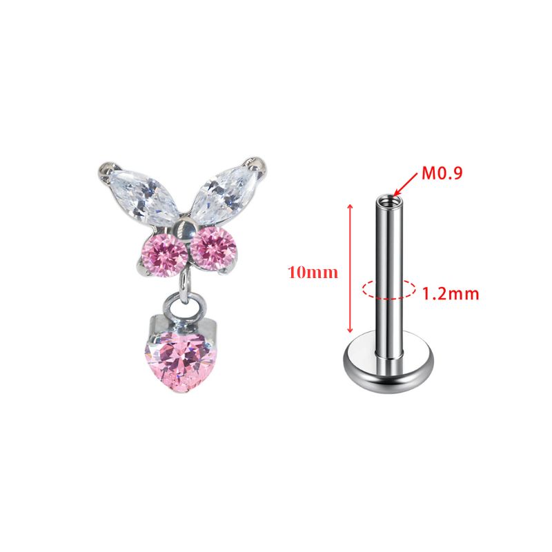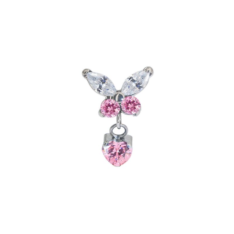 (Titanium F136) Bướm trắng mix đá hồng thả rơi