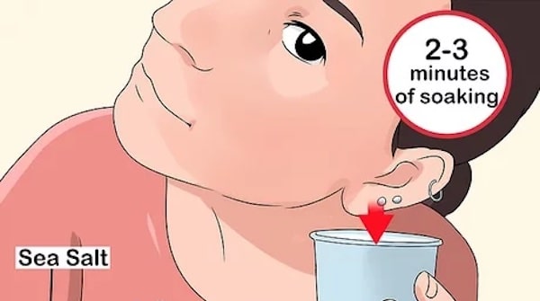Vệ sinh lỗ bằng dung dịch nước muối sinh lí 2-3 lần ngày một. Sử dụng bông tăm để lau xung quanh lỗ xỏ và chân khuyên được sạch sẽ hơn.