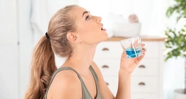 - Súc miệng bằng nước muối sinh lí hoặc nước súc miệng không cồn (tốt nhất sau bữa ăn).
