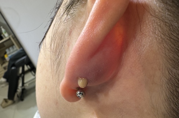 Hình ảnh khách xỏ khuyên tại nhà bị nhiễm trùng, sưng to