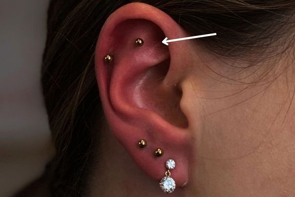 Kế tiếp, không thể bỏ lỡ qua vị trí ở sụn vành tai - Helix. Đây là một trong những vị trí mix được hầu hết với các vị trí còn lại. Cho nên, khi hỏi đến xỏ upper lobe mix vị trí nào đẹp thì không thể bỏ lỡ qua Helix rồi nè.