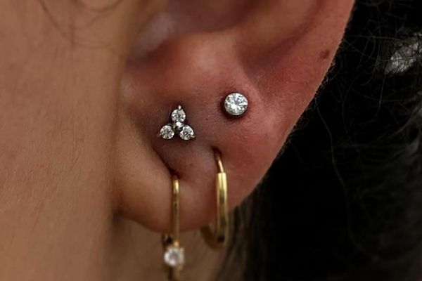 Nếu bạn đã sở hữu lỗ 2 ở phần thịt tai mà vẫn còn diện tích, bạn có thể xỏ thêm lỗ 3 trông xinh yêu lắm nè. Tuy nhiên, khi bạn đã xác định xỏ nhiều vị trí ở phần thịt tai, bạn đừng quên lựa chọn cho mình mẫu khuyên nhỏ gọn để trông không bị rối mắt.